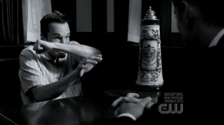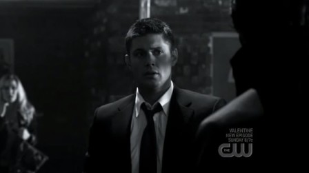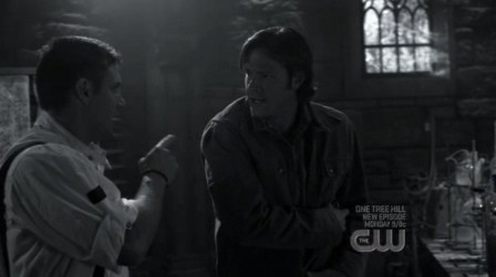Dean mu vrazí jednu do obličeje, ten se postaví a ukáže zuby..