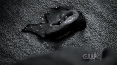 Dean. Utrhl jsem ho Drakulovi z hlavy. Sáhni si.... Nepřipomíná ti to něco?